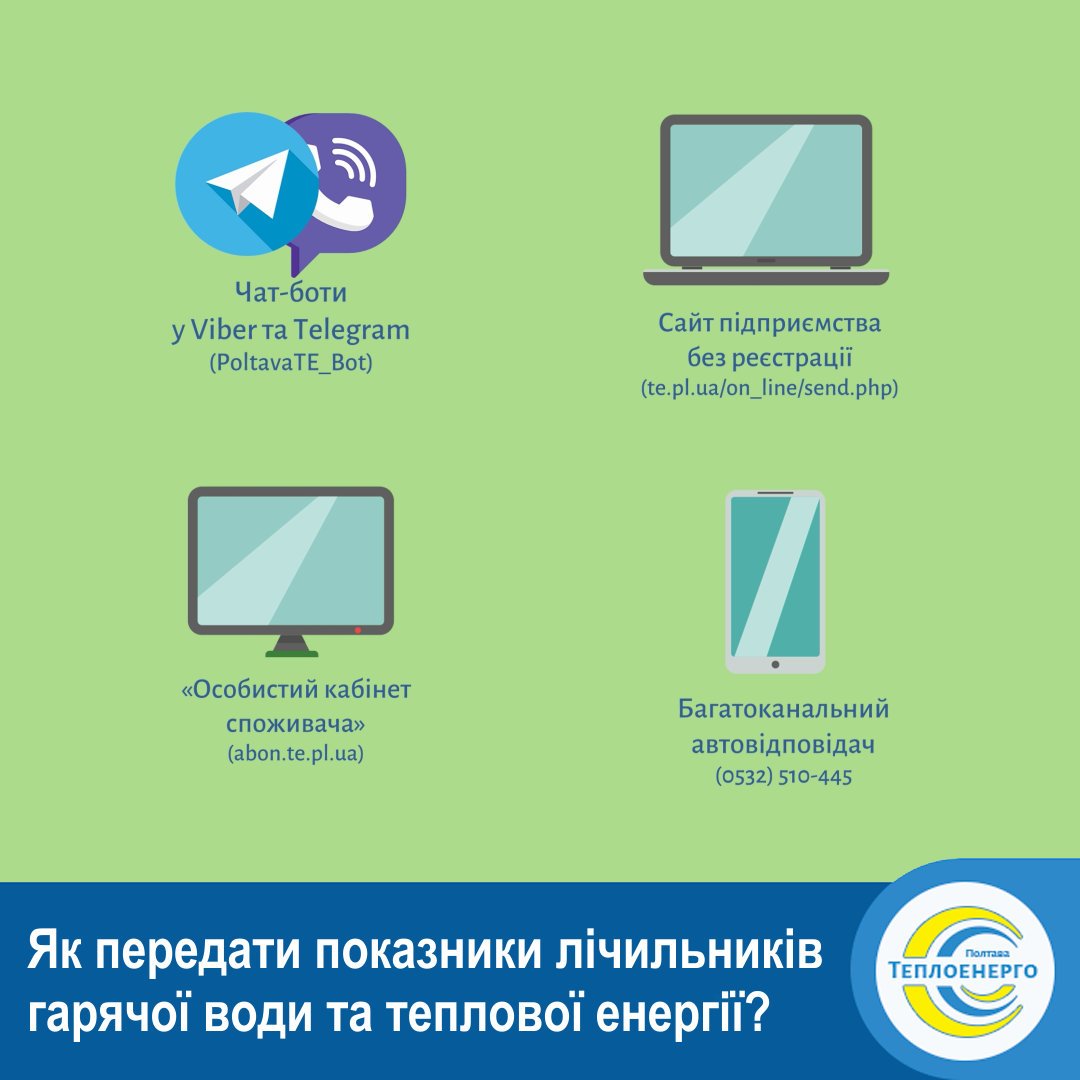 «Полтаватеплоенерго» пропонує кілька способів передачі показників: