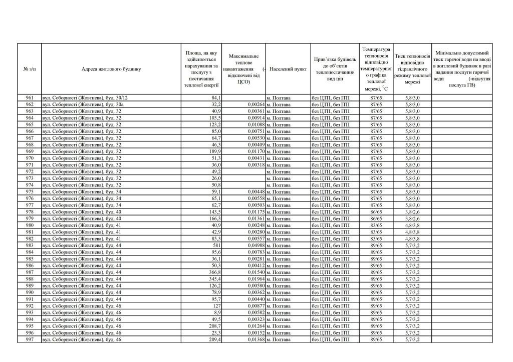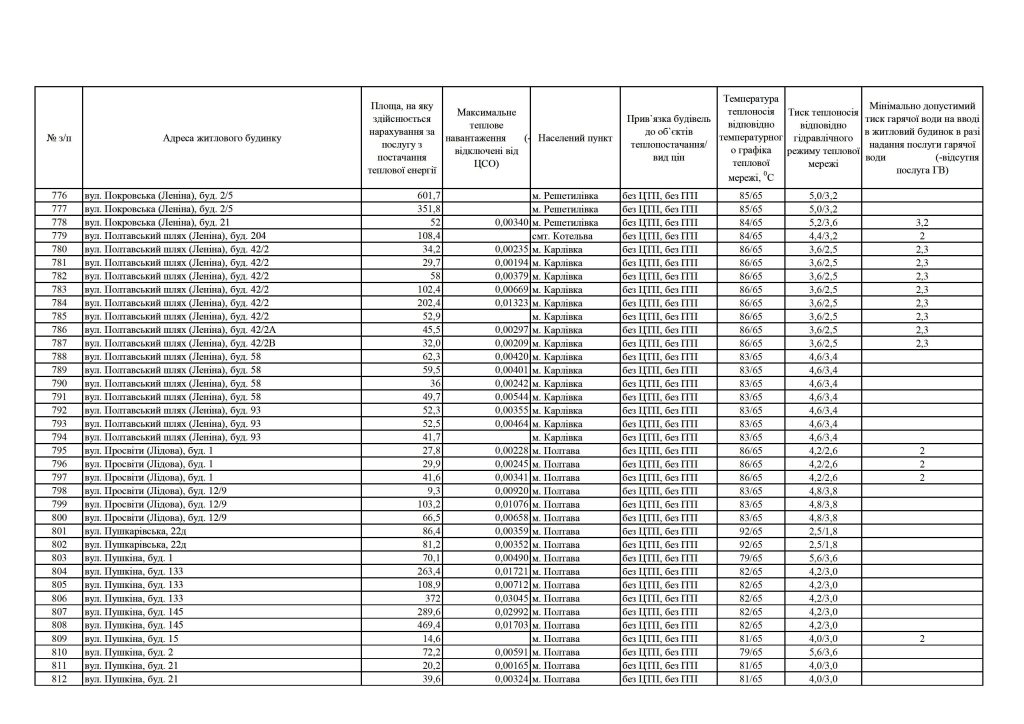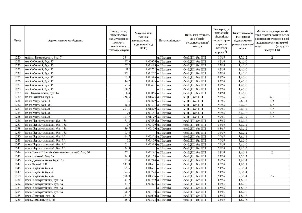 НЕЖИТЛОВІ ПРИМІЩЕННЯ, які розташовані в житловому будинку та беруть участь у розподілі обсягів наданої послуги з постачання теплової енергії ПОКВПТГ «Полтаватеплоенерго»