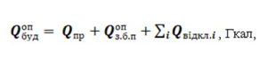 Середнє питоме споживання теплової енергії на опалення приміщень (qоп) в багатоквартирному будинку у розрахунковий період розраховується за формулою: