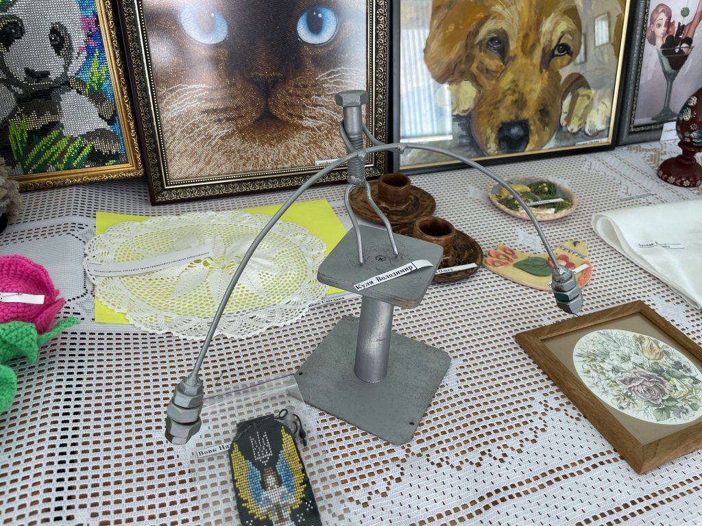 Особливу увагу глядачів привернули вироби в техніці пап’є-маше. Наша колега Тетяна Ломако, поділилася секретами виготовлення своїх фігурок : «Створення однієї фігурки триває від двох тижнів. Це складний процес: від залізного каркаса до багатошарового ліплення та детального розпису. Кожна іграшка має свою історію та характер:- «Русалка з чайкою» – подарунок для подруги, де кожен елемент символізує її ім’я та знак зодіаку.- «Дівчинка на велосипеді» – подарунок колезі-спортсменці, де враховані навіть найдрібніші деталі. «Лисичка» та «Дівчинка-легкість» – роботи, що передають настрій та момент. -розповіла майстриня.
