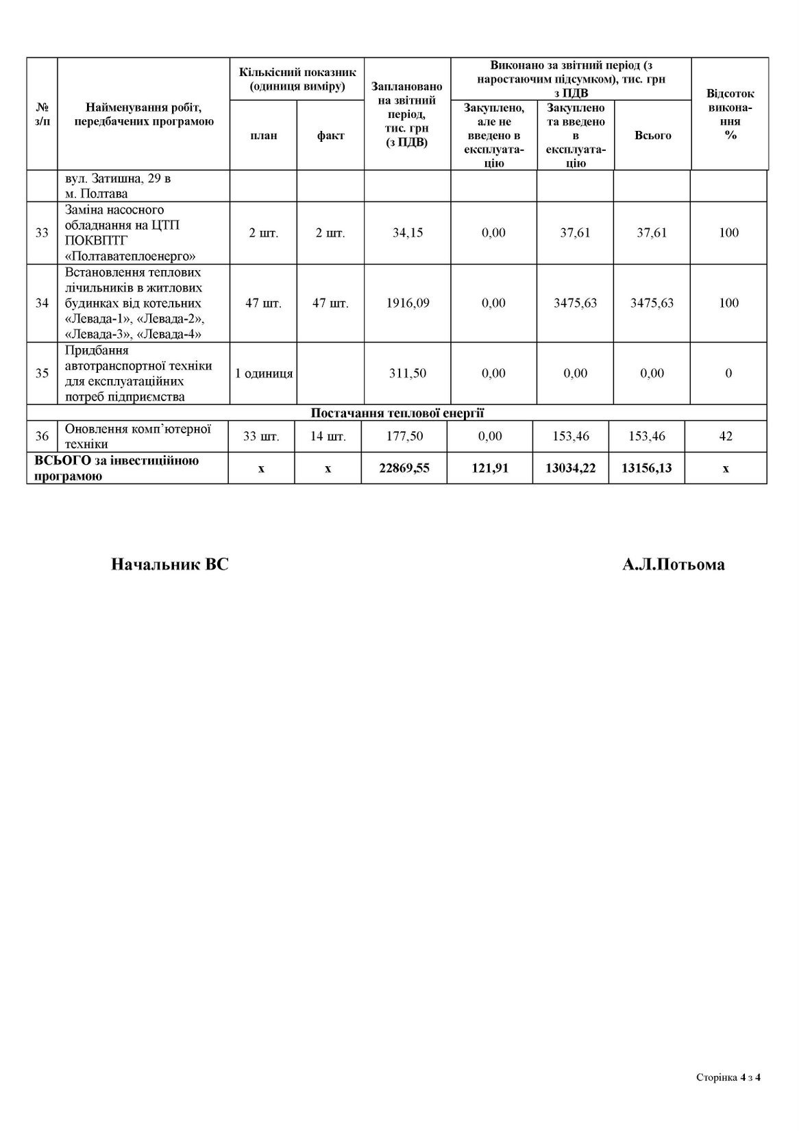 про виконання ПОКВПТГ «ПОЛТАВАТЕПЛОЕНЕРГО»