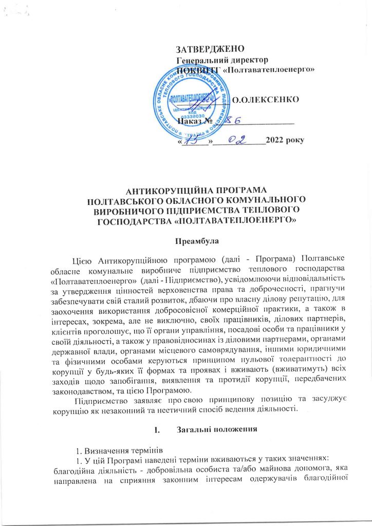 АНТИКОРУПЦІЙНА ПРОГРАМА ПОКВПТГ «ПОЛТАВАТЕПЛОЕНЕРГО»