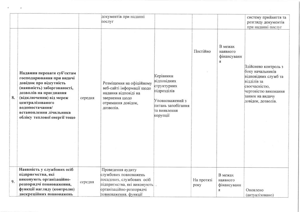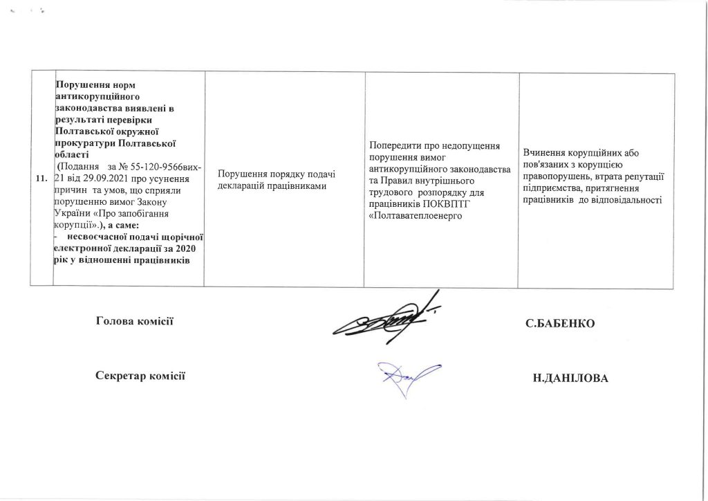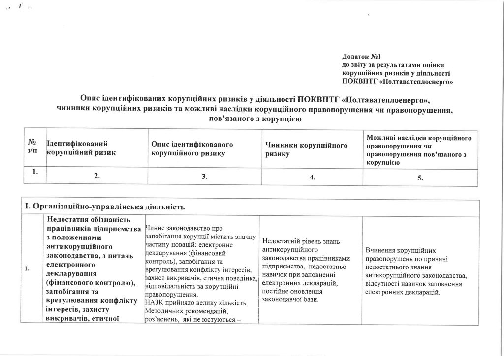 ОПИС ІДЕНТИФІКОВАНИХ КОРУПЦІЙНИХ РИЗИКІВ У ДІЯЛЬНОСТІ ПОКВПТГ «ПОЛТАВАТЕПЛОЕНЕРГО»