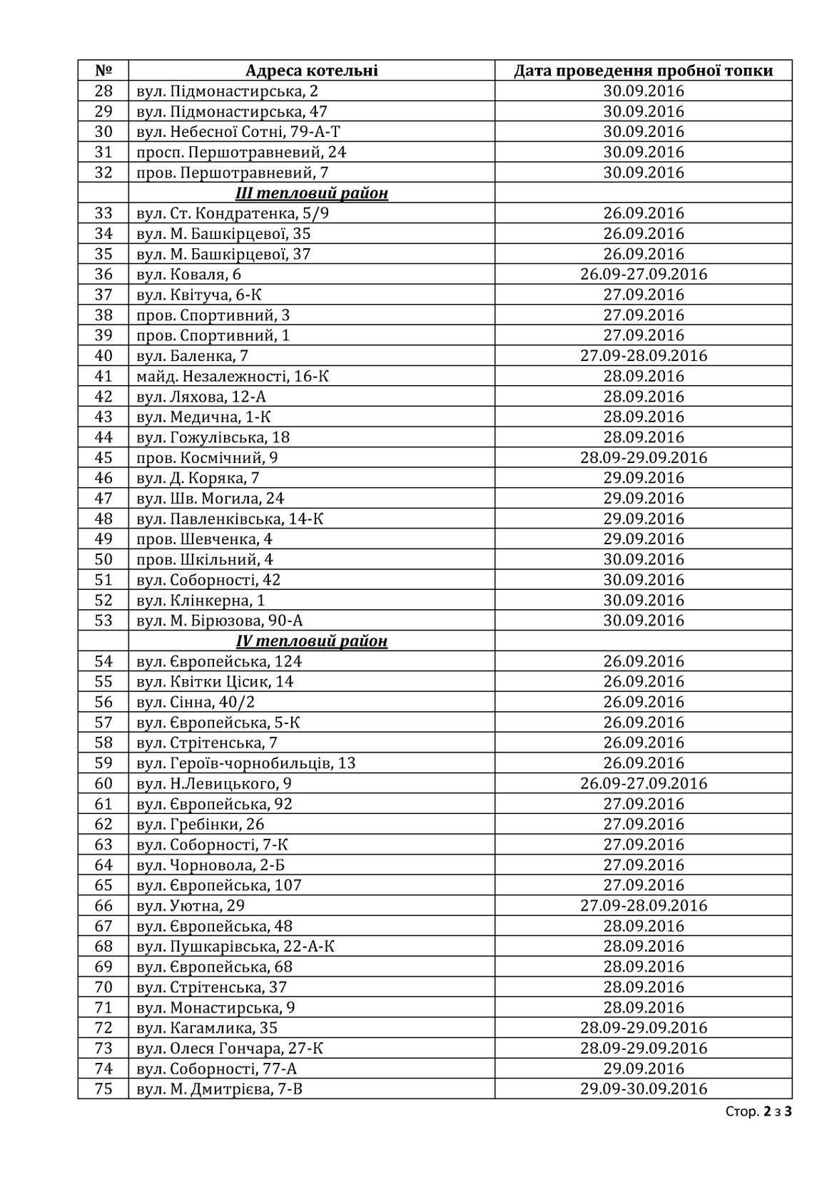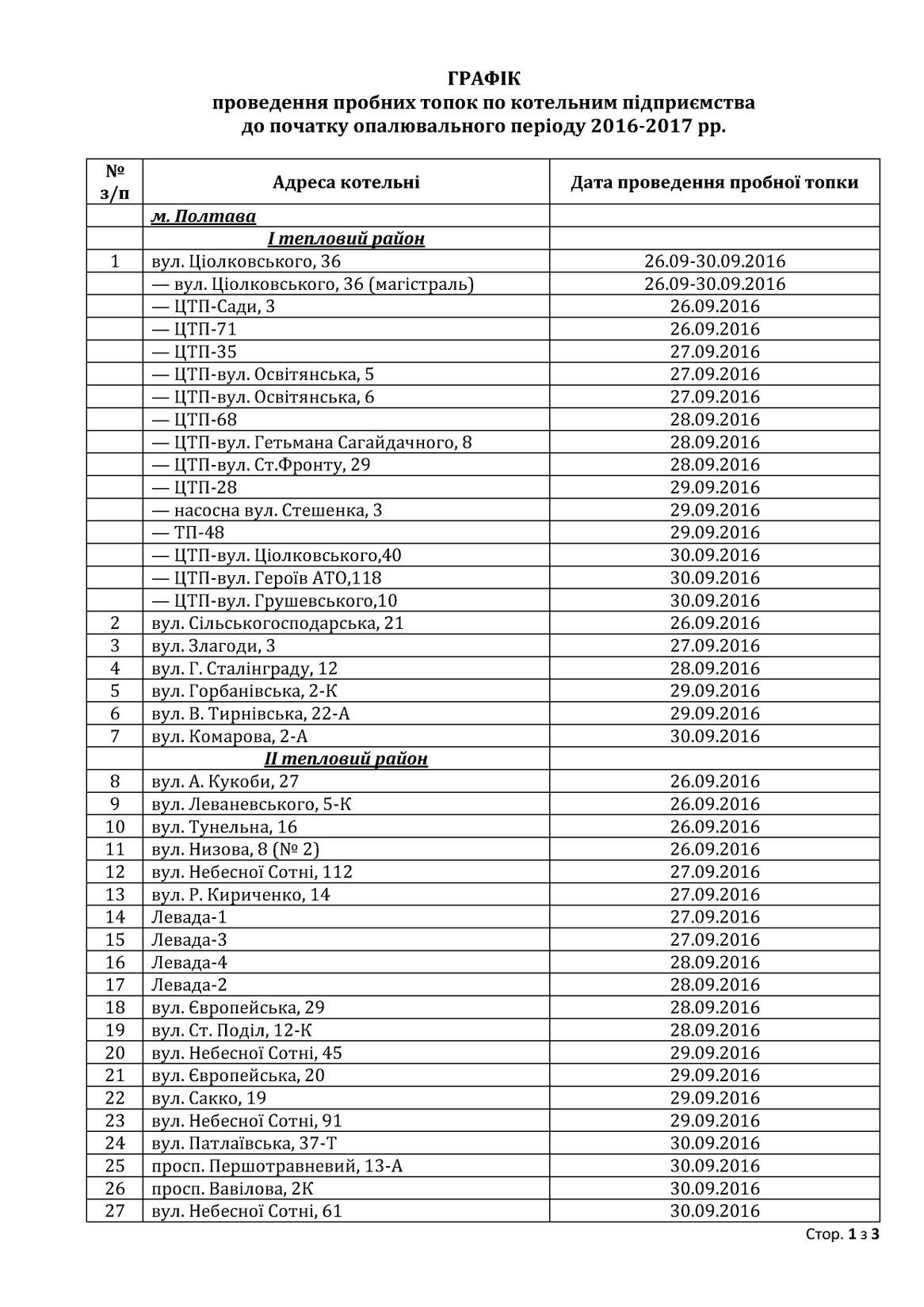 ПРОБНИХ ТОПОК ПО КОТЕЛЬНИМ ПІДПРИЄМСТВА