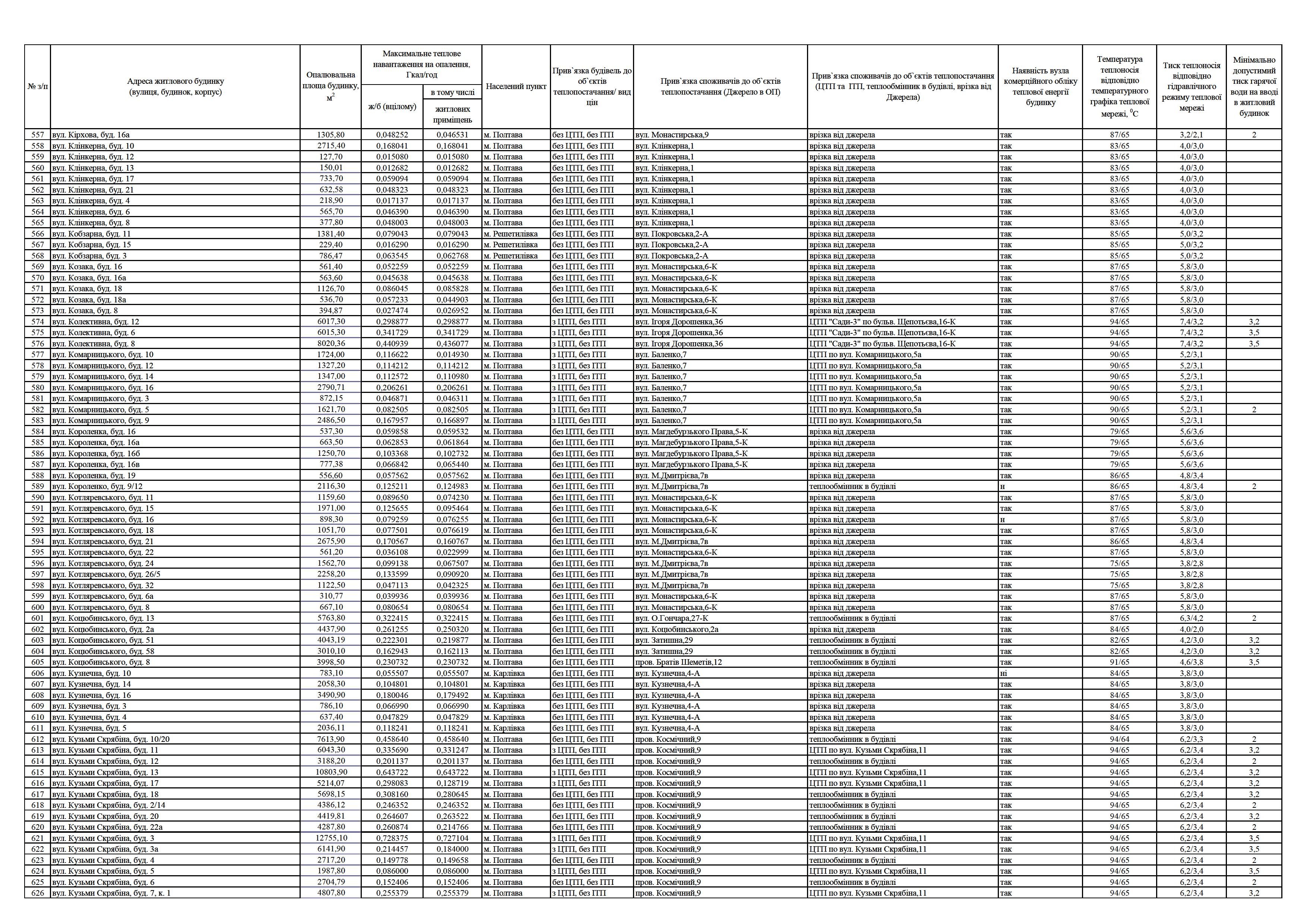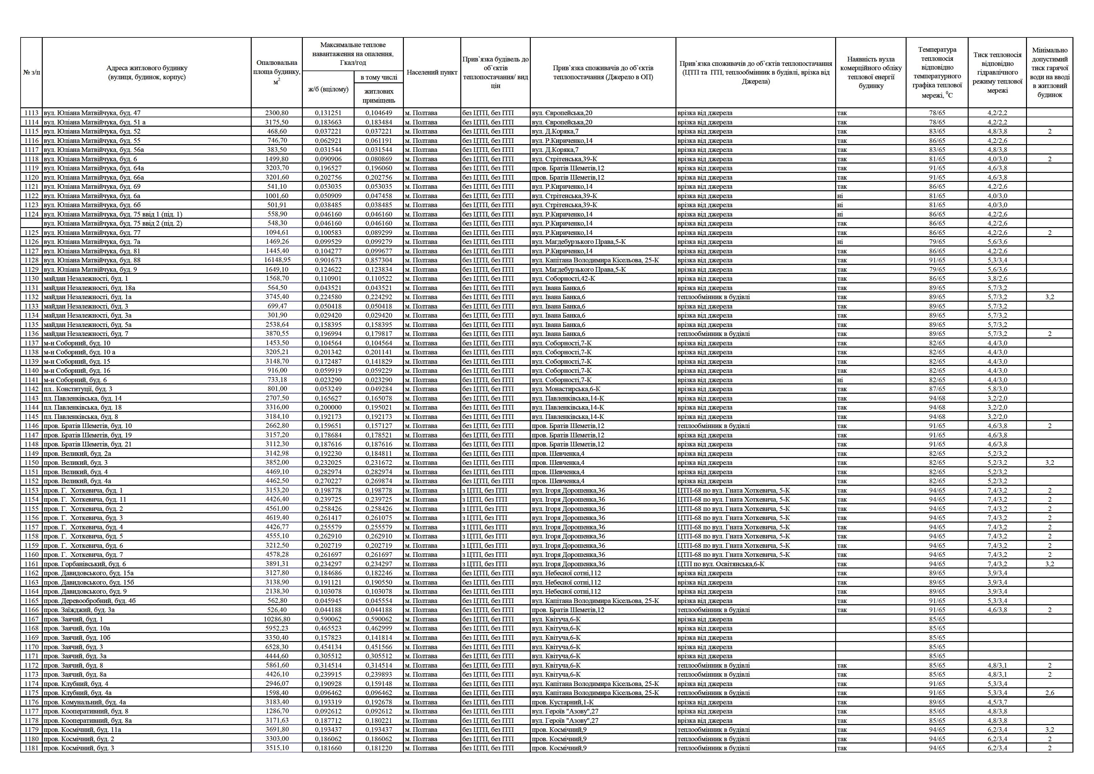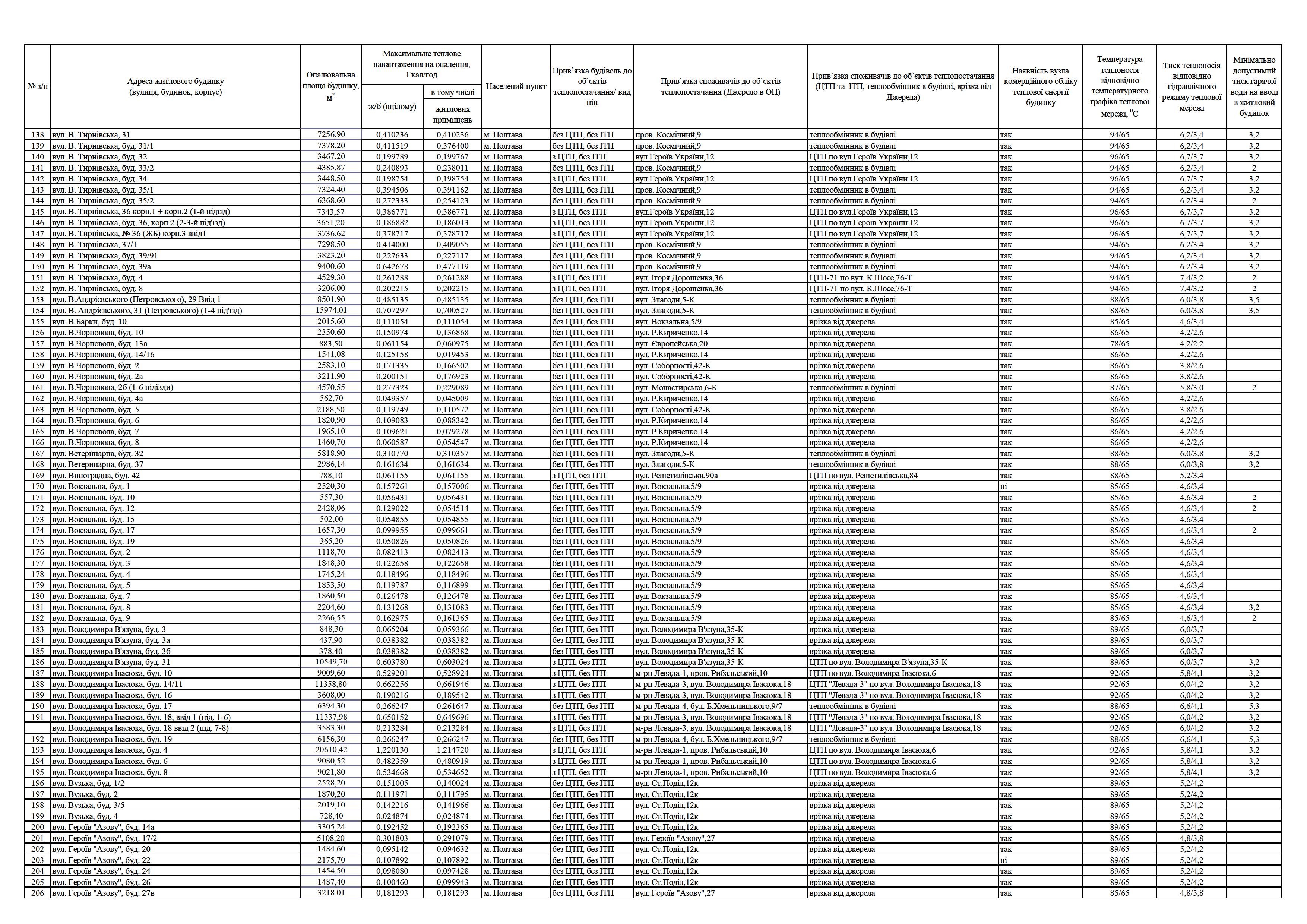 ПЕРЕЛІК ЖИТЛОВИХ БУДИНКІВ,