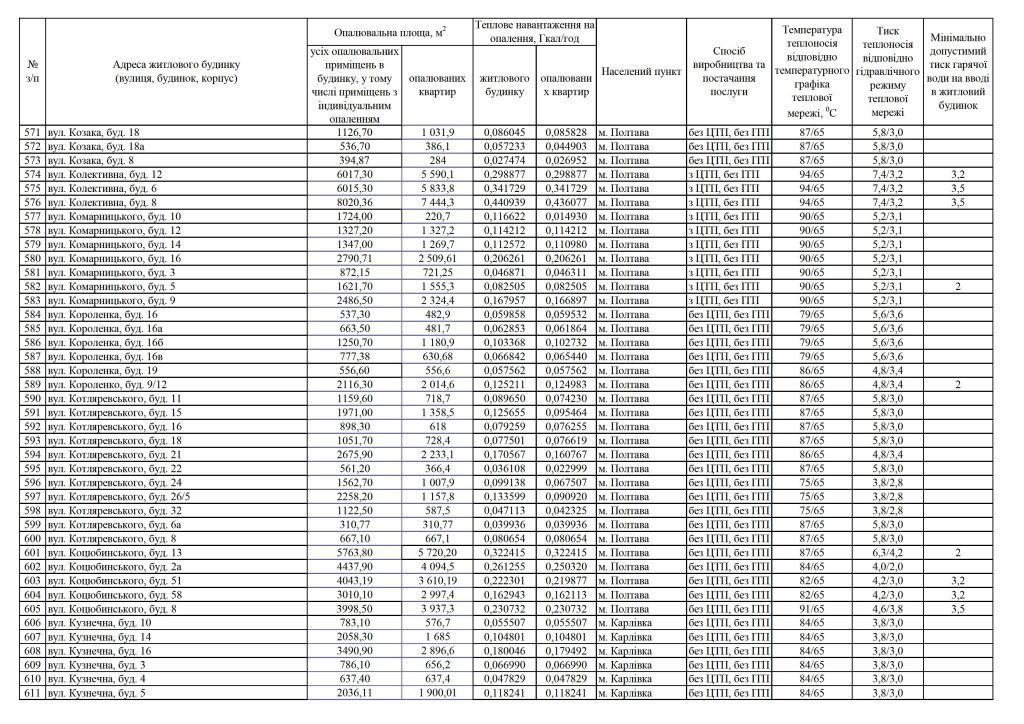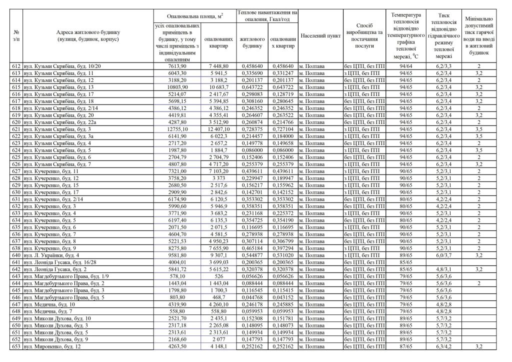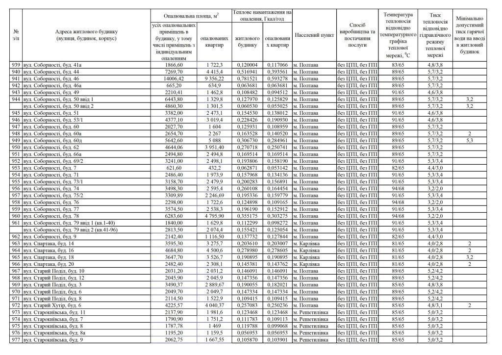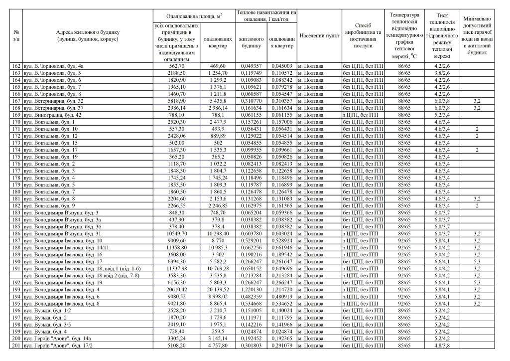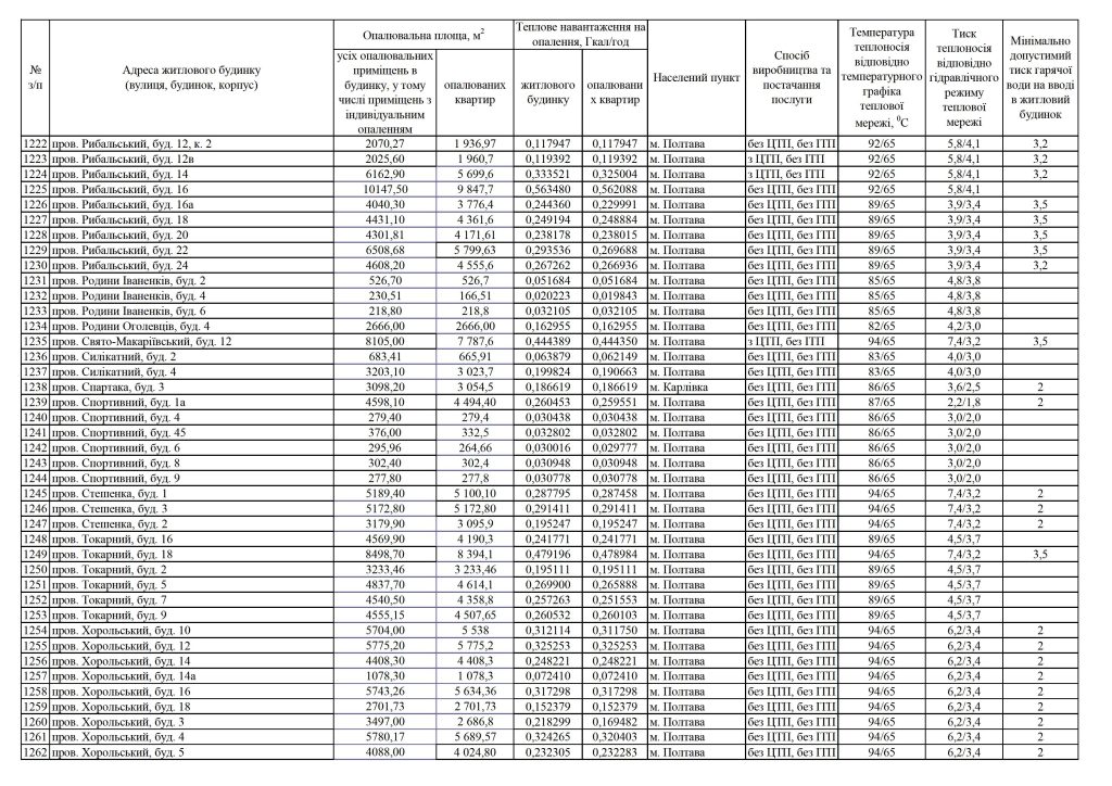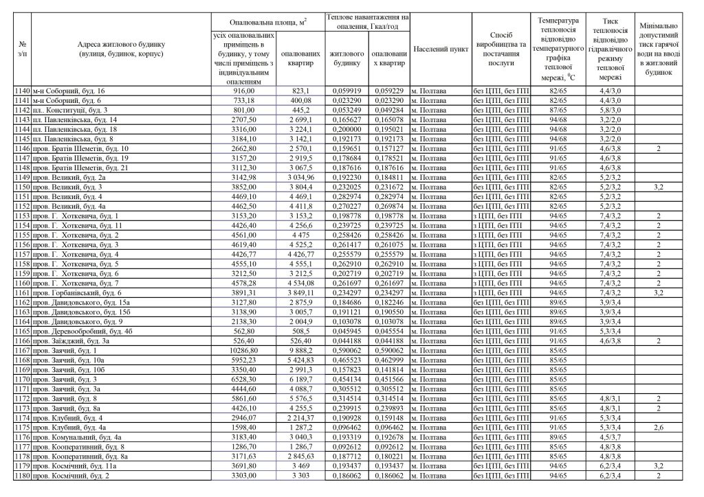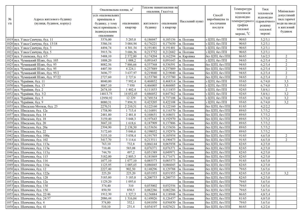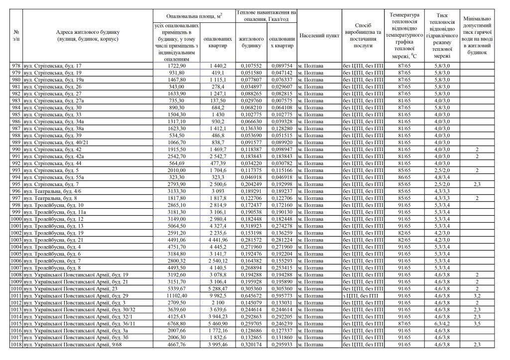 ПЕРЕЛІК ЖИТЛОВИХ БУДИНКІВ, що отримують послуги з централізованого теплопостачання від виробничих об’єктів ПОКВПТГ «Полтаватеплоенерго»
