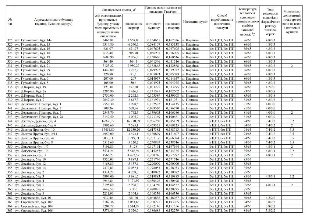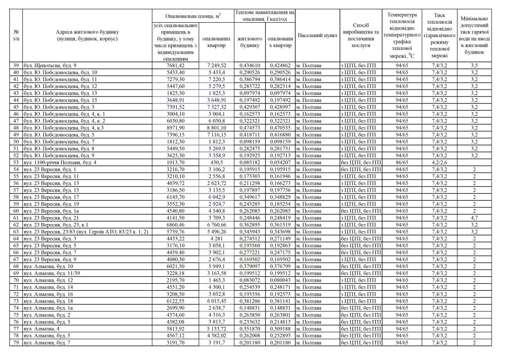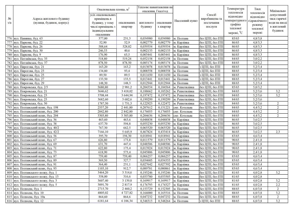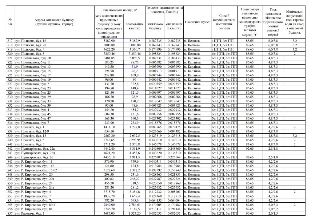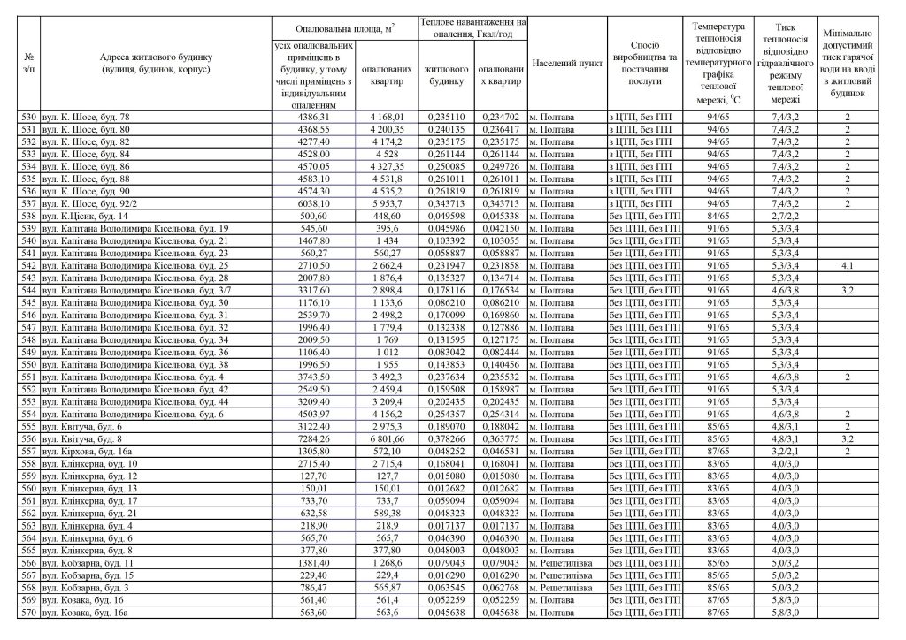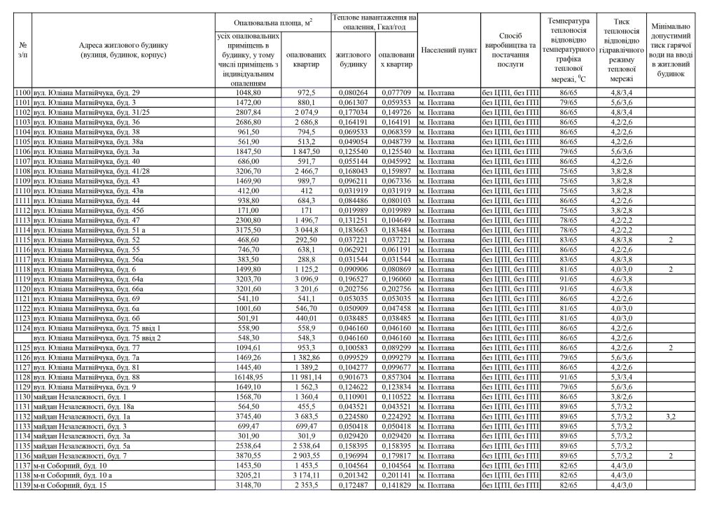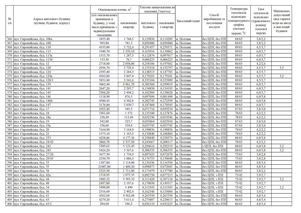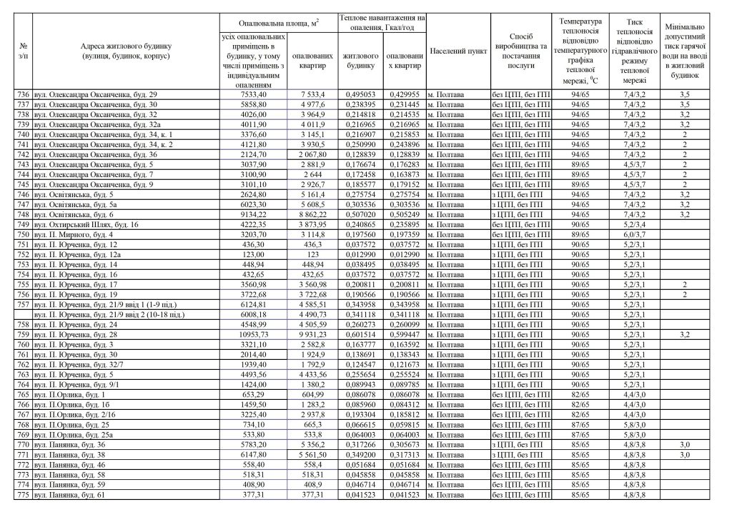 ПЕРЕЛІК ЖИТЛОВИХ БУДИНКІВ, що отримують послуги з централізованого теплопостачання від виробничих об’єктів ПОКВПТГ «Полтаватеплоенерго»
