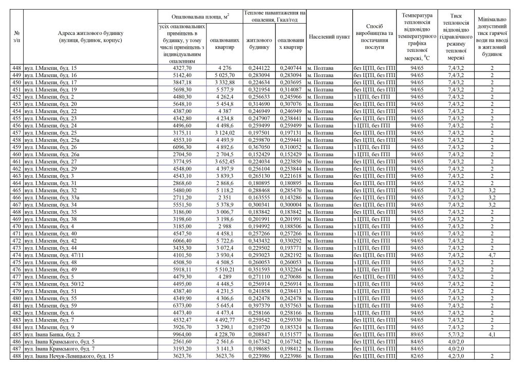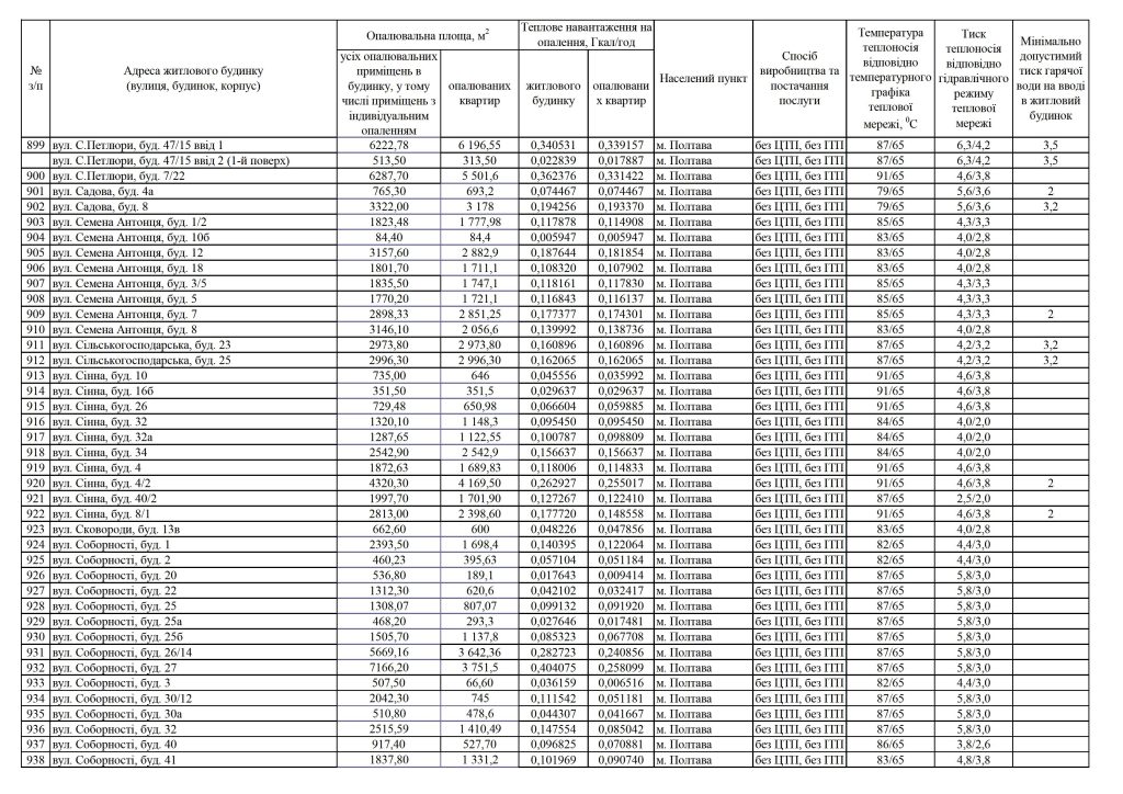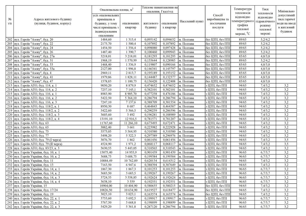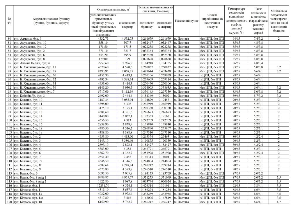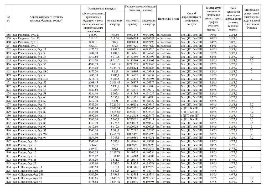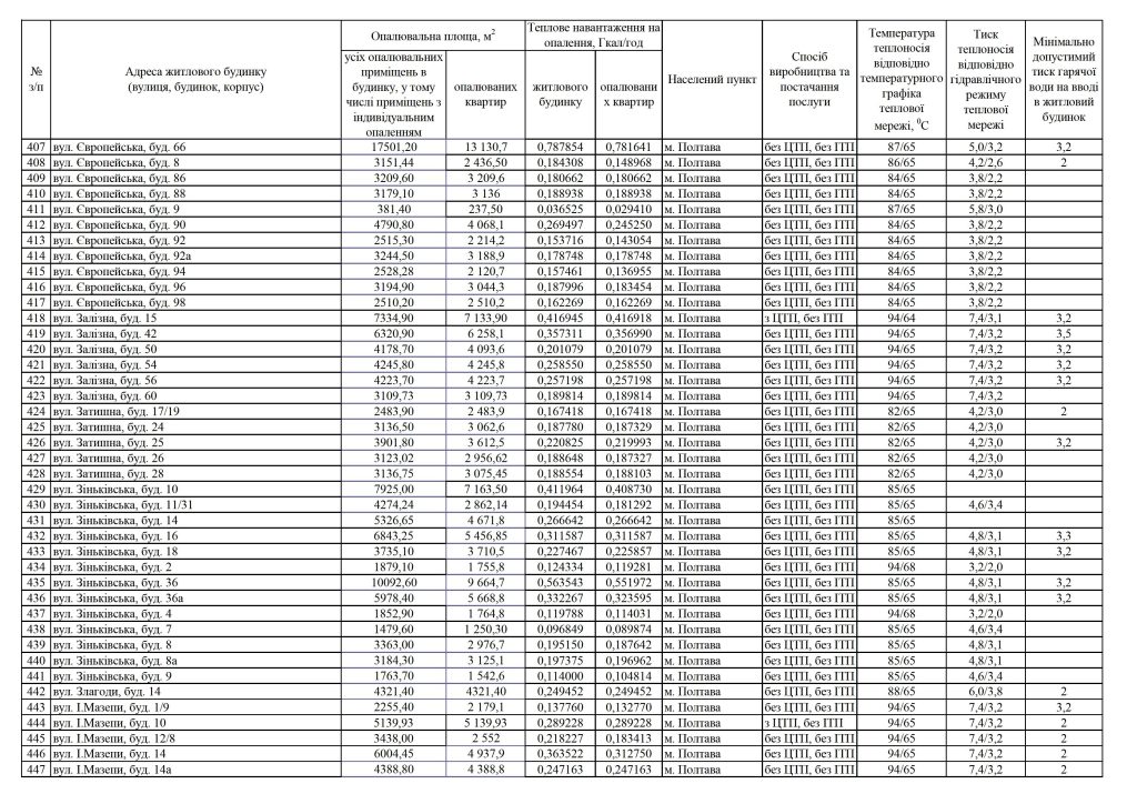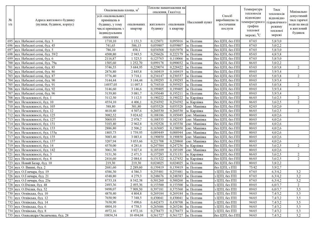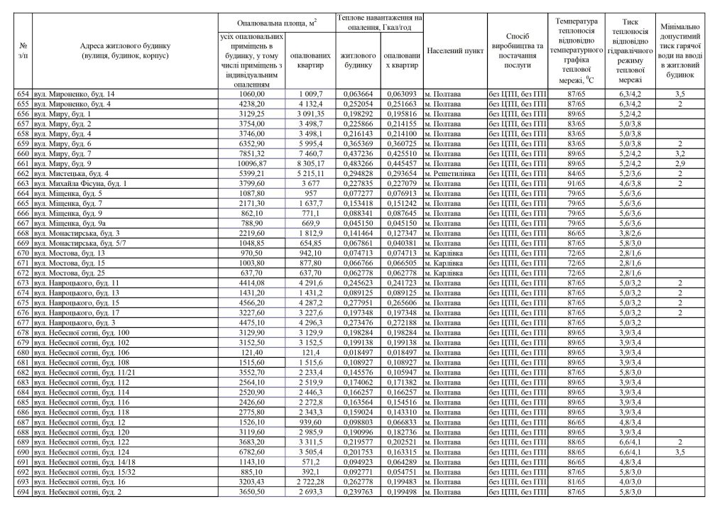 ПЕРЕЛІК ЖИТЛОВИХ БУДИНКІВ, що отримують послуги з централізованого теплопостачання від виробничих об’єктів ПОКВПТГ «Полтаватеплоенерго»